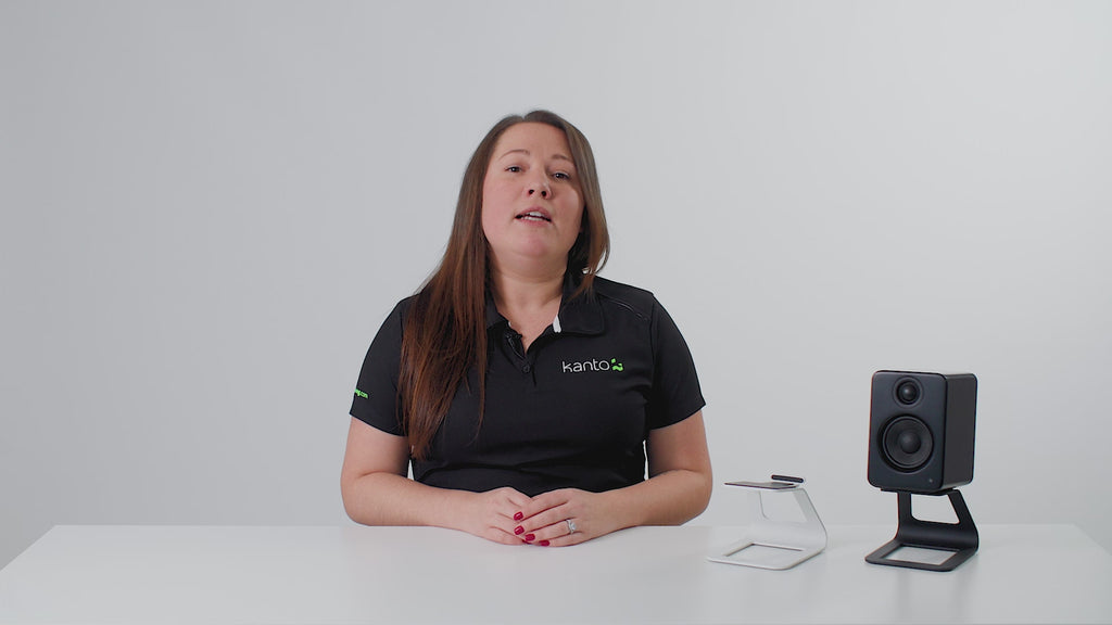 Improve the placement of your 4- to 7-inch speakers while maintaining a low-profile desktop setup. Providing 16° of tilt, S6 desktop speaker stands are designed to angle your speakers towards your ears, ensuring you experience the full range of frequencies they have to offer. Each stand features foam padding to reduce vibration when you have the sound cranked up, and includes a mounting hole and 1/4”-20 screw to secure your YU6, TUK or other compatible speakers in place.