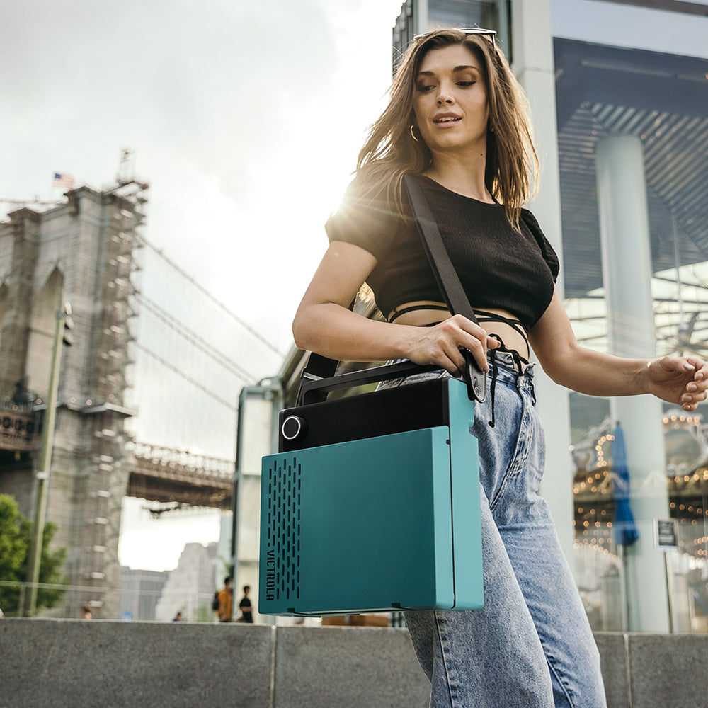 Victrola Revolution Go Turntable - Blue - Introducing the award-winning Victrola Revolution GO, the world's pioneering portable, rechargeable Bluetooth record player. With its battery-powered design, the Revolution GO lets you enjoy your vinyl collection wherever you go.