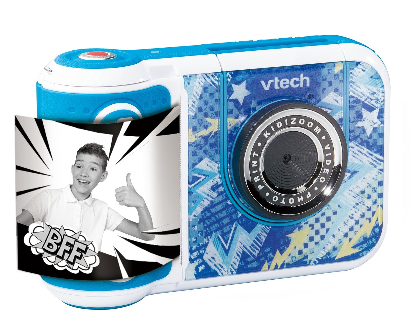 Print, tear and share! The VTech KidiZoom Print Cam Bundle lets kids capture their world, get creative and turn their photos into instant keepsakes. With its built-in thermal printer, children can take photos, selfies or videos, add fun effects, borders and stamps — then instantly print them out to decorate the included notebook or stickers. Designed for ages 5 and up, this set is perfect for young creators who love mixing technology with hands-on fun.